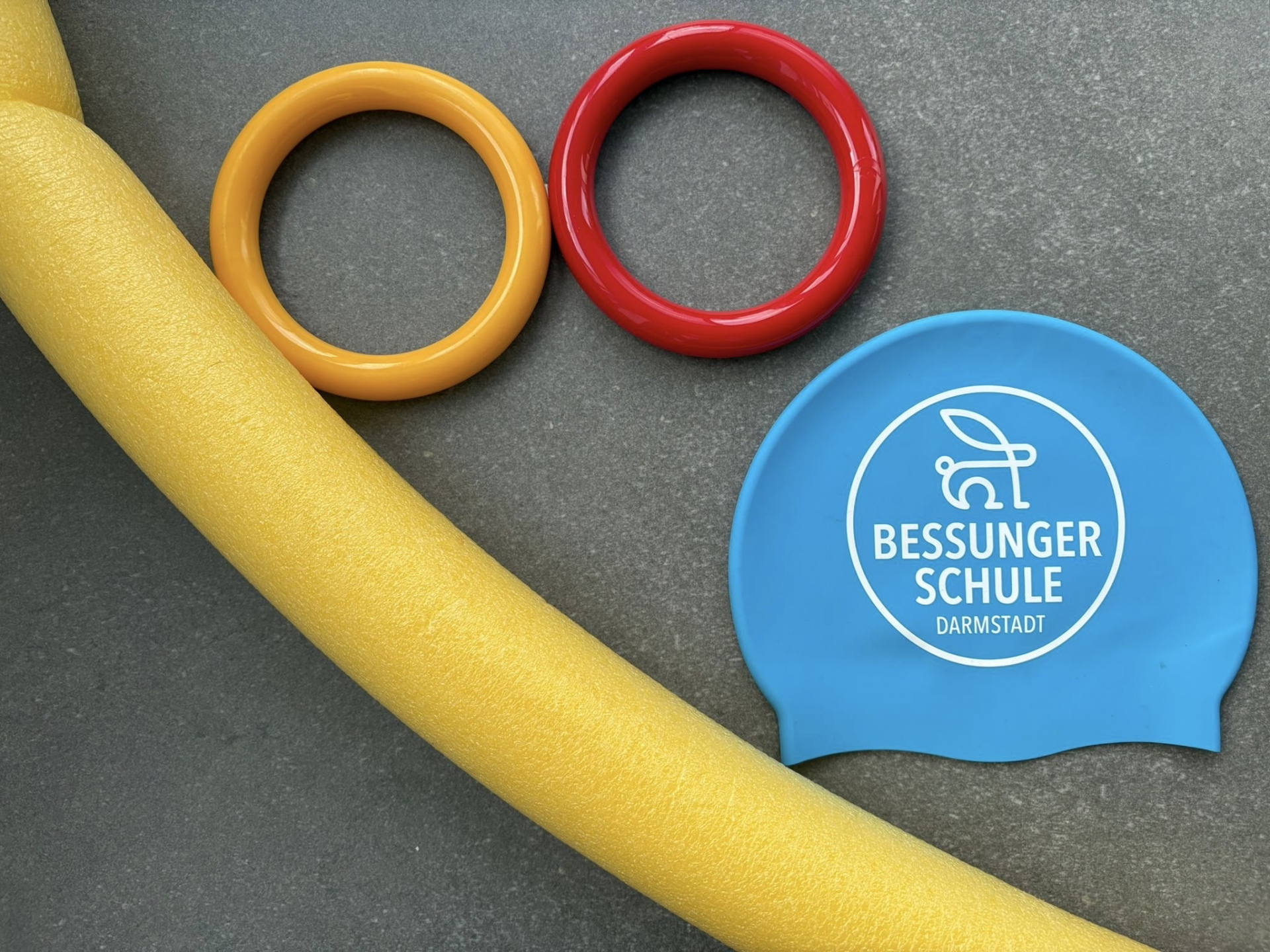Hilfsmittel wie Schwimmbretter, Nudeln, Tauchringe etc. unterstützen beim Erlernen von Schwimmtechniken, stärken die Muskulatur und verbessern die Ausdauer. Weiterhin sind Badekappen wichtig und während des Schulsports unerlässlich.